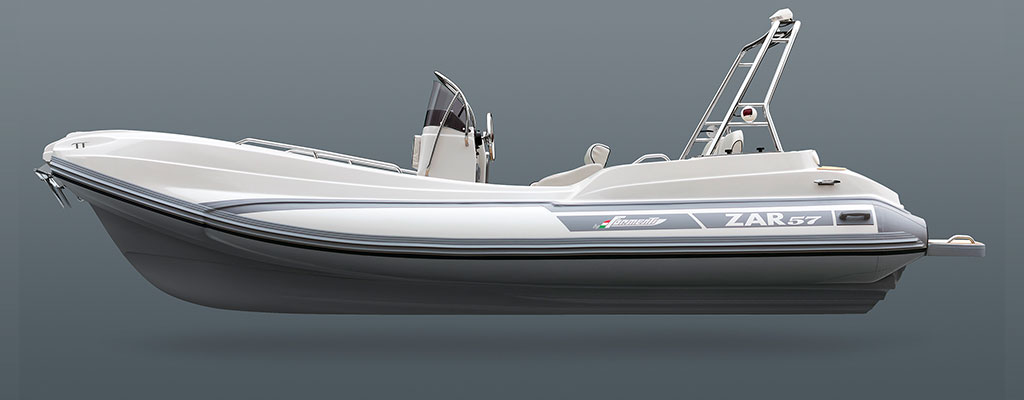 Enhanced by numerous accessories such as very comfortable side pockets and about 160-liter fuel tank under the deck, preparation for an electric anchor winch and triple-function driver’s seat, the ZAR 57 Well-Deck has a new, very personal design that emphasizes and accompanies the thrust and dynamic equilibrium of its every element. As if that were not enough, the new 57 has a longer, higher-performance hull than its celebrated predecessor, the winner of many Italian races thanks precisely to its exceptional hull lines.